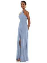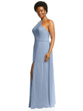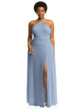 Embrace glamour with the attention-grabbing diamond halter neckline on this lux chiffon gown. A formal design with a natural waist, this maxi dress creates a flowing silhouette with a modified circle skirt with a slit up the thigh and a natural waist that defines your shape perfectly.