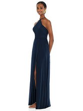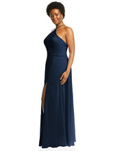 Embrace glamour with the attention-grabbing diamond halter neckline on this lux chiffon gown. A formal design with a natural waist, this maxi dress creates a flowing silhouette with a modified circle skirt with a slit up the thigh and a natural waist that defines your shape perfectly.