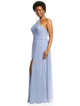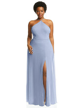 Embrace glamour with the attention-grabbing diamond halter neckline on this lux chiffon gown. A formal design with a natural waist, this maxi dress creates a flowing silhouette with a modified circle skirt with a slit up the thigh and a natural waist that defines your shape perfectly.