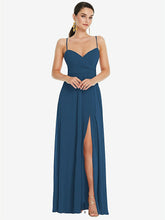 【STYLE: LB036】Adjustable Strap Wrap Bodice Maxi Dress with Front Slit 【COLOR: Dusk Blue】