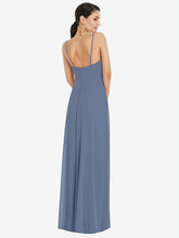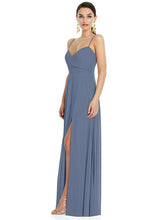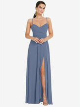 【STYLE: LB036】Adjustable Strap Wrap Bodice Maxi Dress with Front Slit 【COLOR: Larkspur Blue】