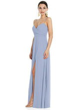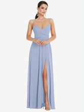 【STYLE: LB036】Adjustable Strap Wrap Bodice Maxi Dress with Front Slit 【COLOR: Sky Blue】