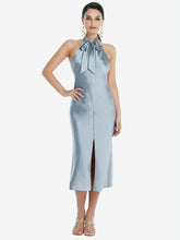 【STYLE: LB038】Scarf Tie Stand Collar Midi Bias Dress with Front Slit【COLOR: Mist】