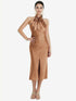 【STYLE: LB038】Scarf Tie Stand Collar Midi Bias Dress with Front Slit【COLOR: Toffee】