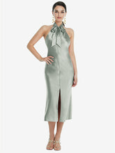 【STYLE: LB038】Scarf Tie Stand Collar Midi Bias Dress with Front Slit【COLOR: Willow Green】