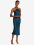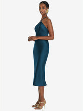 【STYLE: LB040】Diamond Halter Bias Midi Slip Dress with Convertible Straps【COLOR: Atlantic Blue】