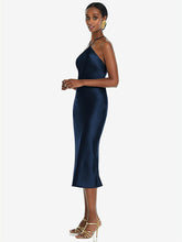 【STYLE: LB040】Diamond Halter Bias Midi Slip Dress with Convertible Straps【COLOR: Midnight Navy】