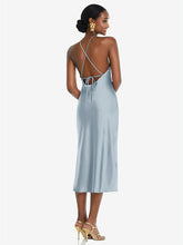 Delicate in every aspect, this lux charmeuse bias dress is defined by its eye-catching diamond halter. Slim, adjustable straps crisscross an open back for a sexy but sophisticated finishing touch to this midi-length slip dress.