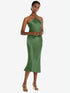 【STYLE: LB040】Diamond Halter Bias Midi Slip Dress with Convertible Straps【COLOR: Vineyard Green】