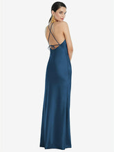 【STYLE: LB041】Diamond Halter Bias Maxi Slip Dress with Convertible Straps【COLOR: Dusk Blue】