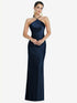 Smooth, sleek lux charmeuse instantly elevates the elegance of this formal bias gown. Its diamond halter neck and adjustable straps add a modern look to a long, formal skirt with a side slit. Twirl across the dance floor or stand up as a bridesmaid in sophisticated style.