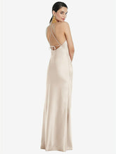 Smooth, sleek lux charmeuse instantly elevates the elegance of this formal bias gown. Its diamond halter neck and adjustable straps add a modern look to a long, formal skirt with a side slit. Twirl across the dance floor or stand up as a bridesmaid in sophisticated style.