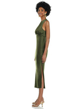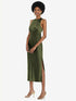 【STYLE: LB042】Jewel Neck Sleeveless Midi Dress with Bias Skirt【COLOR: Olive Green】