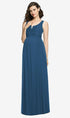A notch detailed neckline and a lovely pleated bodice add a sweet panache to this full-length sleeveless maternity bridesmaid dress. The lux chiffon fabric brings a flowy sense of grace to the shirred skirt.