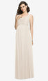 A notch detailed neckline and a lovely pleated bodice add a sweet panache to this full-length sleeveless maternity bridesmaid dress. The lux chiffon fabric brings a flowy sense of grace to the shirred skirt.
