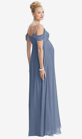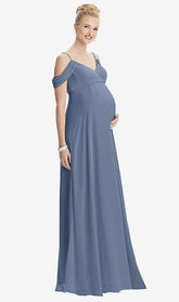 【STYLE: M442】Draped Cold-Shoulder Chiffon Maternity Dress【COLOR: Larkspur Blue】