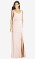 Spotlight your natural curves with a blouson bodice and flattering v-neckline. A side front slit playfully shows off a hint of leg, while lux chiffon fabric lends an air of simple elegance to this full-length soft trumpet dress.