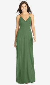 Simple stitching at the waist enhances the exquisite design of this long, lux chiffon maxi dress. Sleek spaghetti straps and a stylish v-neckline top a flowing, figure-skimming, modified A-line skirt.
