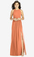 【STYLE: TH008】Shirred Skirt Jewel Neck Halter Dress with Front Slit【COLOR: Sweet Melon】