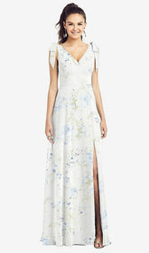【STYLE: TH018】Bow-Shoulder V-Back Chiffon Gown with Front Slit【COLOR: Bleu Garden】