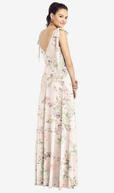 【STYLE: TH018】Bow-Shoulder V-Back Chiffon Gown with Front Slit【COLOR: Blush Garden】