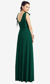 【STYLE: TH018】Bow-Shoulder V-Back Chiffon Gown with Front Slit【COLOR: Hunter Green】