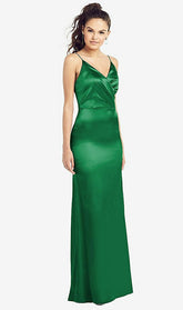 【STYLE: TH022】Slim Spaghetti Strap Wrap Bodice Trumpet Gown【COLOR: Shamrock】