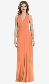 【STYLE: TH029】V-Neck Halter Chiffon Maxi Dress - Taryn【COLOR: Sweet Melon】