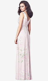 Choose a flattering fit for an evening event. This lux chiffon full-length sleeveless maxi dress hugs curves with a shirred detail skirt front and back. Enjoy a draped V-neck front and an elegant flowing skirt.