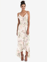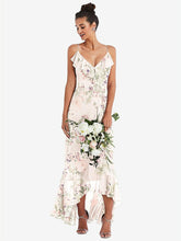 【STYLE: TH040】Ruffle-Trimmed V-Neck High Low Wrap Dress【COLOR: Blush Garden】
