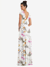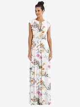 【STYLE: TH042】Flutter Sleeve V-Keyhole Chiffon Maxi Dress【COLOR: Butterfly Botanica Ivory】
