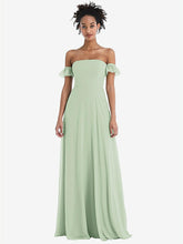 【STYLE: TH046】Off-the-Shoulder Ruffle Cuff Sleeve Chiffon Maxi Dress【COLOR: Celadon】