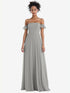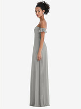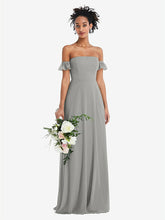 【STYLE: TH046】Off-the-Shoulder Ruffle Cuff Sleeve Chiffon Maxi Dress【COLOR: Chelsea Gray】