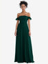 【STYLE: TH046】Off-the-Shoulder Ruffle Cuff Sleeve Chiffon Maxi Dress【COLOR: Evergreen】
