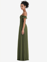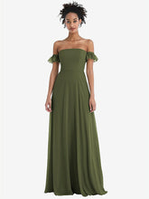 【STYLE: TH046】Off-the-Shoulder Ruffle Cuff Sleeve Chiffon Maxi Dress【COLOR: Olive Green】