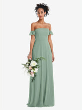 【STYLE: TH046】Off-the-Shoulder Ruffle Cuff Sleeve Chiffon Maxi Dress【COLOR: Seagrass】