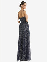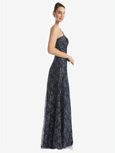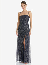 【STYLE: TH061】Metallic Lace Trumpet Dress with Adjustable Spaghetti Straps【COLOR: Midnight Navy】