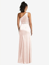 【STYLE: TH063】One-Shoulder Draped Satin Maxi Dress【COLOR: Blush】
