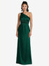 【STYLE: TH063】One-Shoulder Draped Satin Maxi Dress【COLOR: Hunter Green】