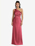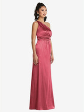 Grace your figure with a gorgeous gown that exudes elegance. You'll shine in this curve-flattering, one-shoulder maxi dress that features an inset waistband and lightly shirred full A-line skirt, all crafted from luscious stretch charmeuse.