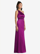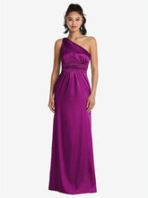 Grace your figure with a gorgeous gown that exudes elegance. You'll shine in this curve-flattering, one-shoulder maxi dress that features an inset waistband and lightly shirred full A-line skirt, all crafted from luscious stretch charmeuse.