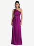 【STYLE: TH063】One-Shoulder Draped Satin Maxi Dress【COLOR: Persian Plum】