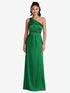 【STYLE: TH063】One-Shoulder Draped Satin Maxi Dress【COLOR: Shamrock】