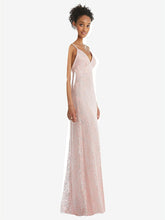 【STYLE: TH084】V-Neck Metallic Lace Maxi Dress with Adjustable Straps【COLOR: Rose - PANTONE Rose Quartz】