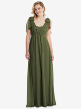 【STYLE: TH095】Empire Waist Shirred Skirt Convertible Sash Tie Maxi Dress【COLOR: Olive Green】