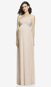 An air of vintage glamor flows through this full-length one shoulder chiffon knit maternity dress. Striking with an asymmetrically draped bodice, this lightly shirred skirt adds a winsome charm.