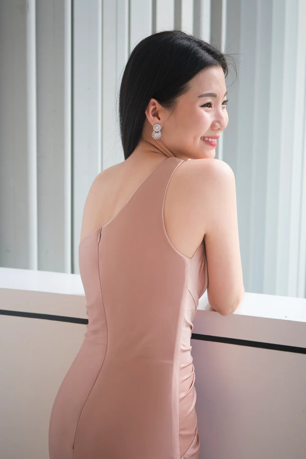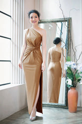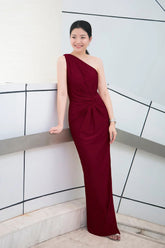 上質な4Wayストレッチのスパンデックス生地を使用し、美しさと着心地の良さを兼ね備えたワンショルダーロングドレスODETTE(オデット)