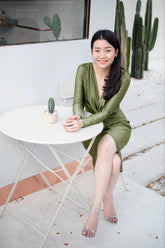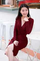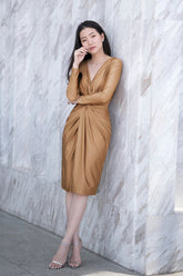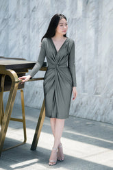 上質な4Wayストレッチのスパンデックス生地を使用し、美しさと着心地の良さを兼ね備えた長袖ミディドレスSYLVIE(シルヴィー)
