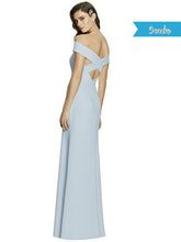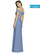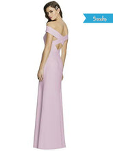 - バックスタイルが印象的なシンプルなカッティングのオフショルダードレス。アイボリー・ラークスパー・スウェードローズ・クラウディーよりお選び頂けます。