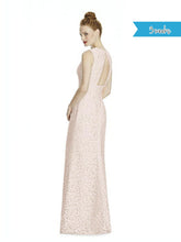 - ざっくり開いた胸元とバックのカットアウトが印象的な淡いピンクのロングドレス。様々なシーンにご活躍いただけます